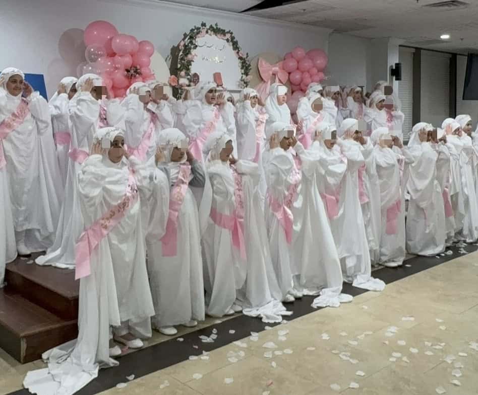 Throughout the three days, the girls engaged in educational and recreational activities such as bingo games related to the lessons, crafting tasbeeh, and coloring exercises. The program concluded with a graduation ceremony during which the participants wore white gowns and flower headbands, symbolizing purity and the beginning of their religious responsibility. Each girl received a certificate and a gift, adding to the joyful atmosphere. The ceremony featured anasheed, and Sheikh Halabi delivered a keynote speech emphasizing the importance of hijab and the critical role of parents in nurturing their daughters’ Islamic identity and values.